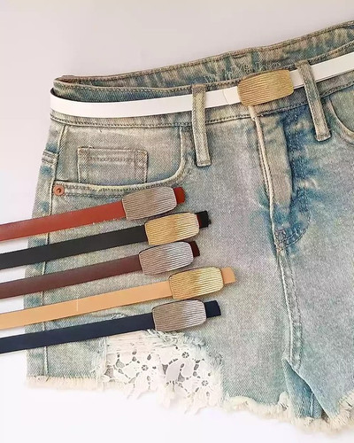 کمربند چرم مصنوعی زنانه مینیمال - طرح باریک 1.5 سانتی متری با سگک زبانه دار
