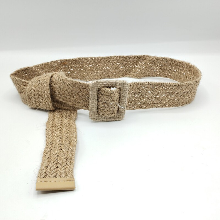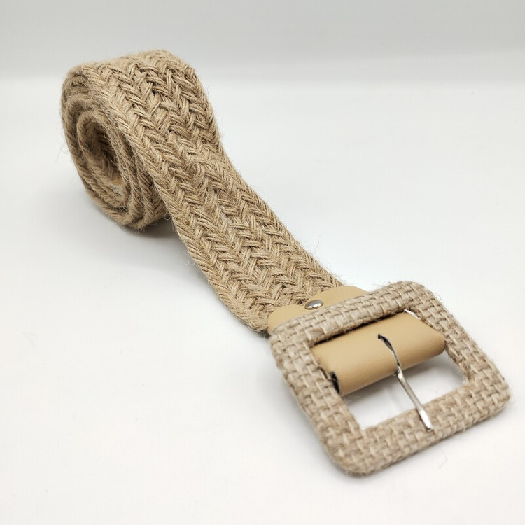 کمربند بافتنی کنفی زنانه با سگک فلزی روکش شده