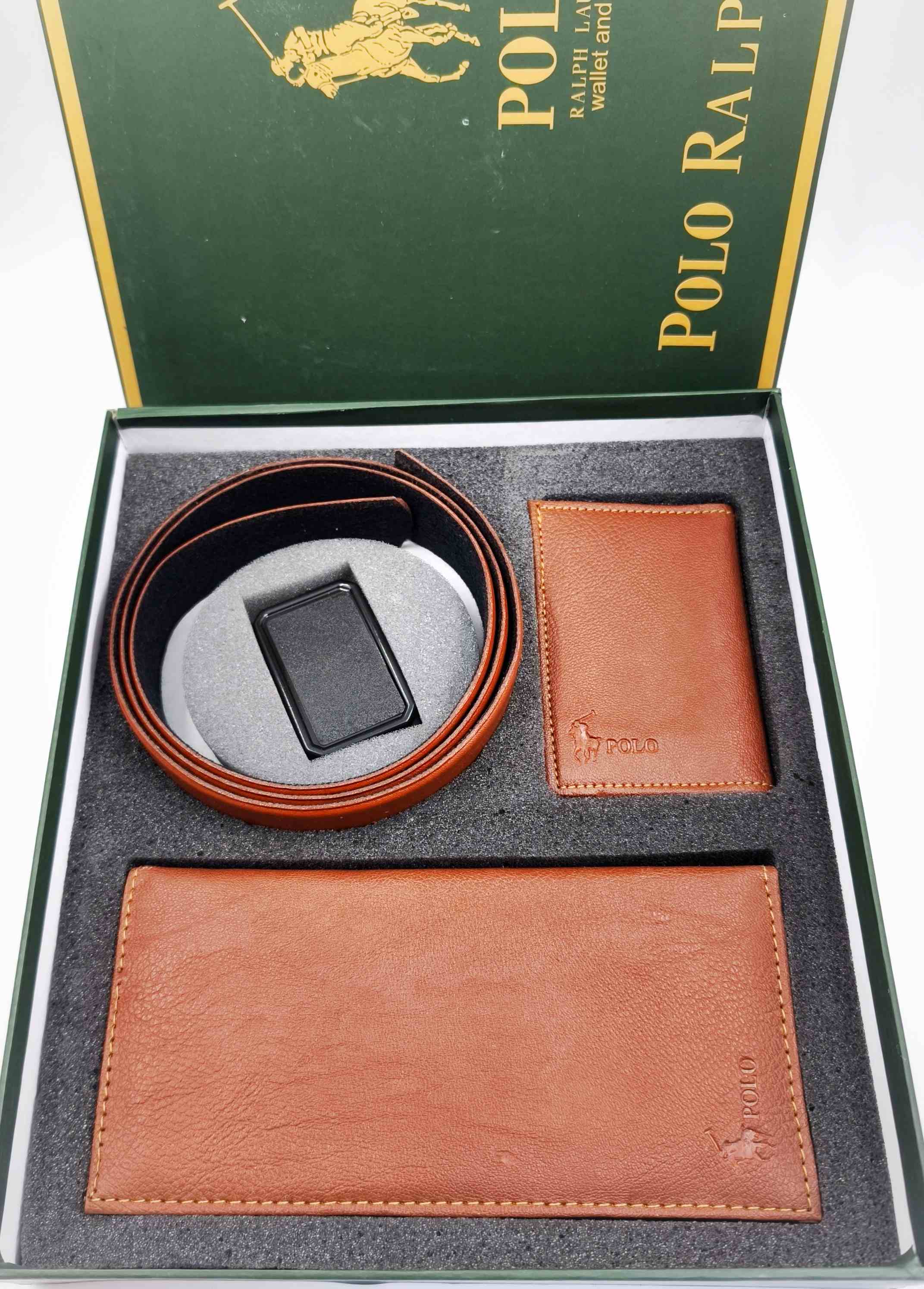 ست هدیه چرمی (کیف پول، کیف کارت، کمربند - مشکی، قهوهای، عسلی)