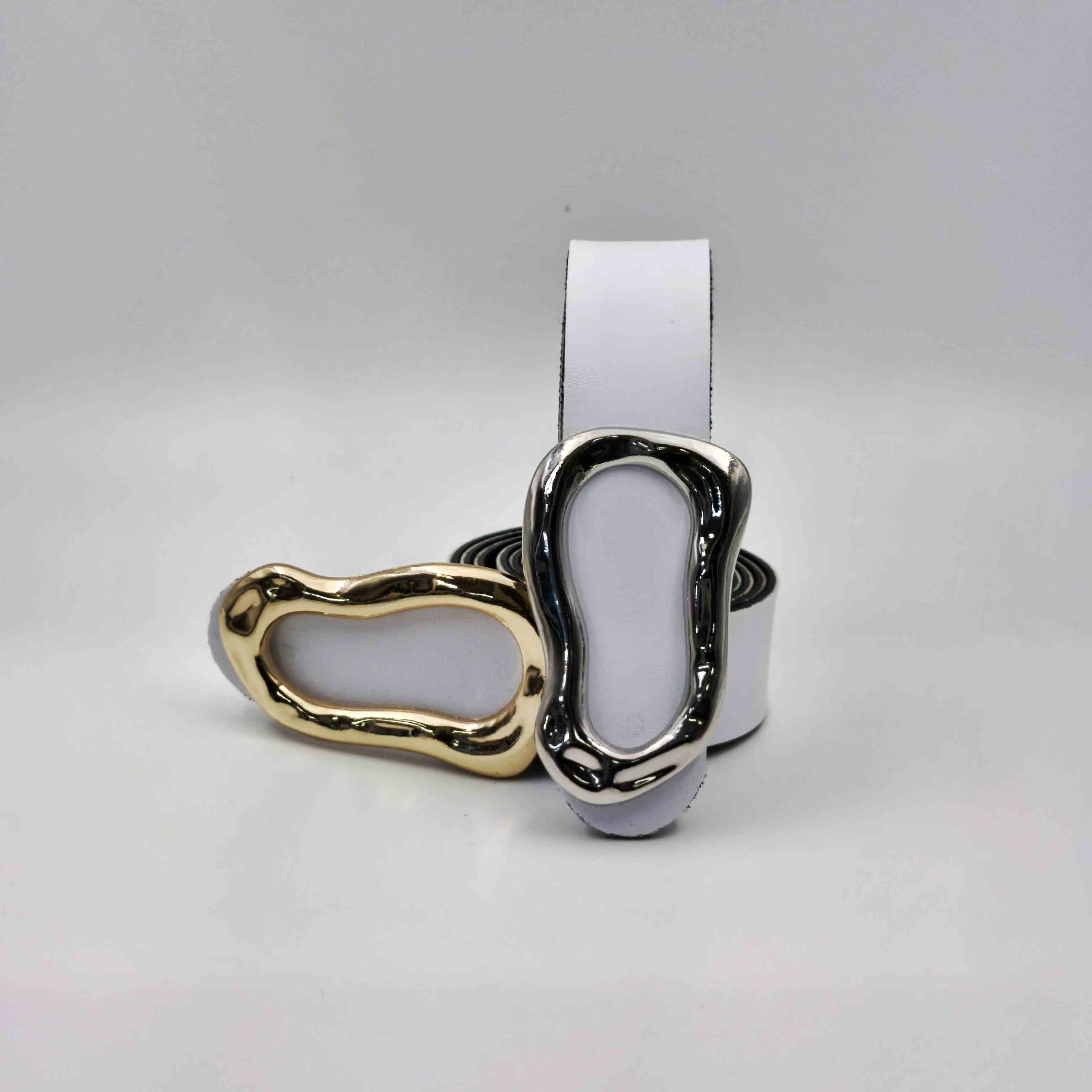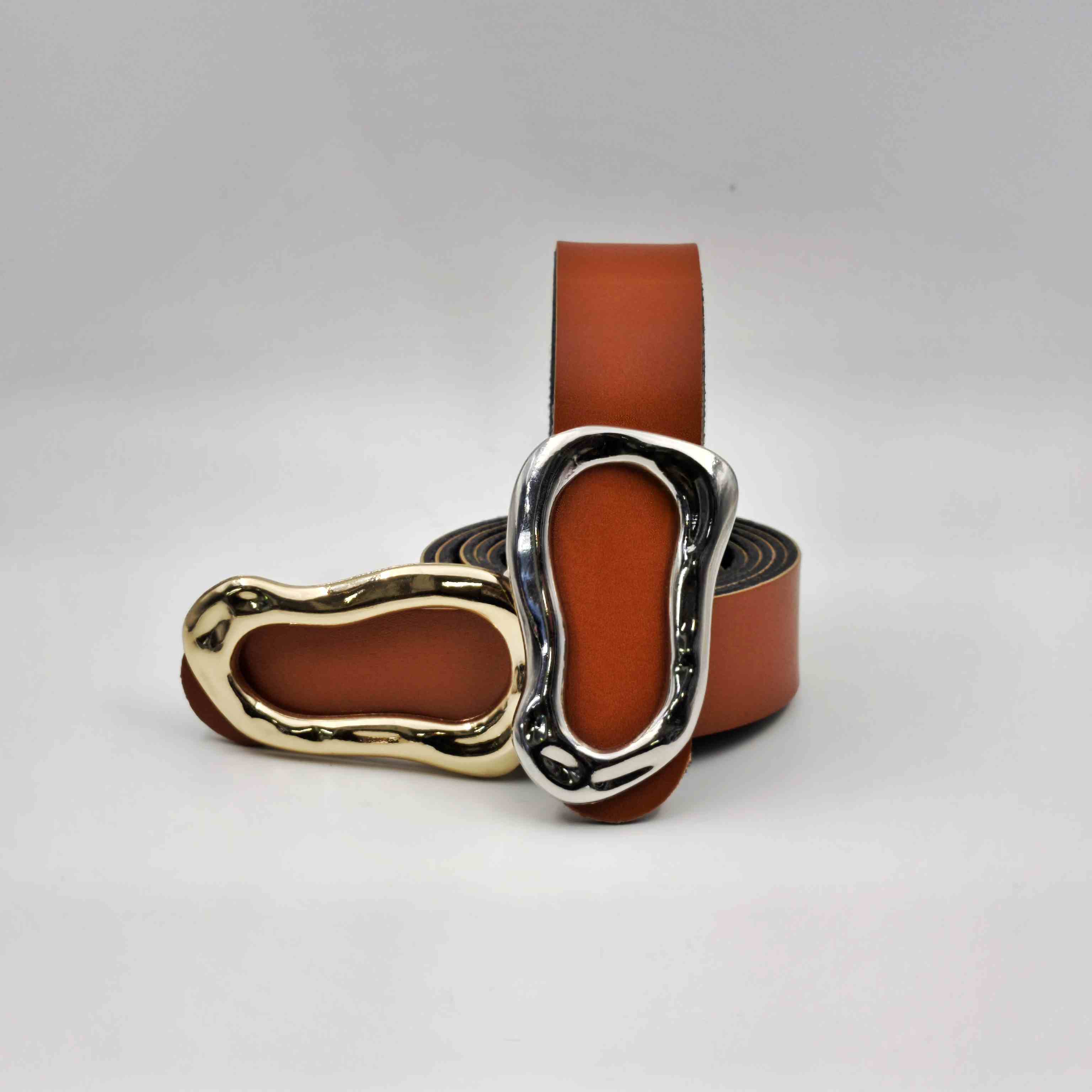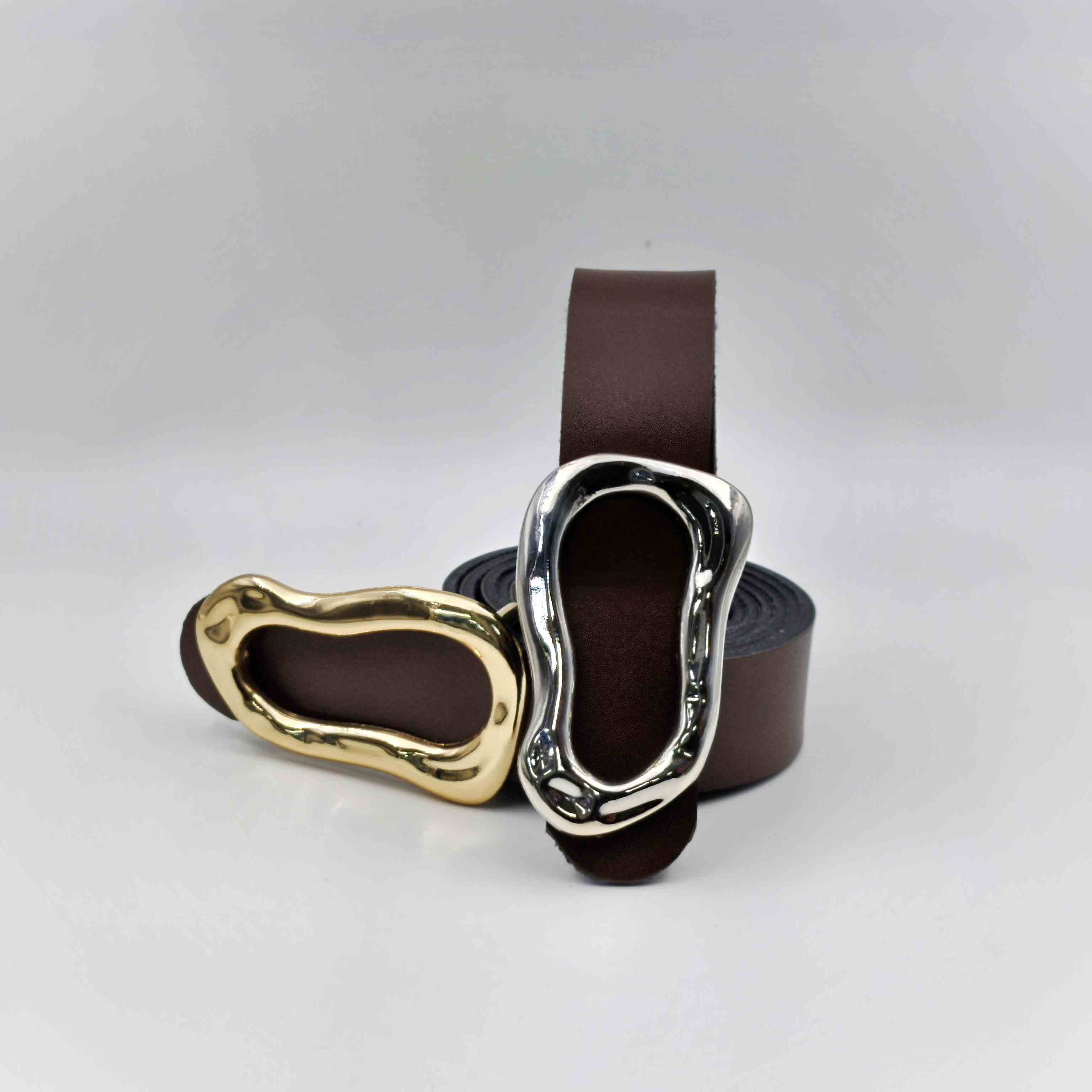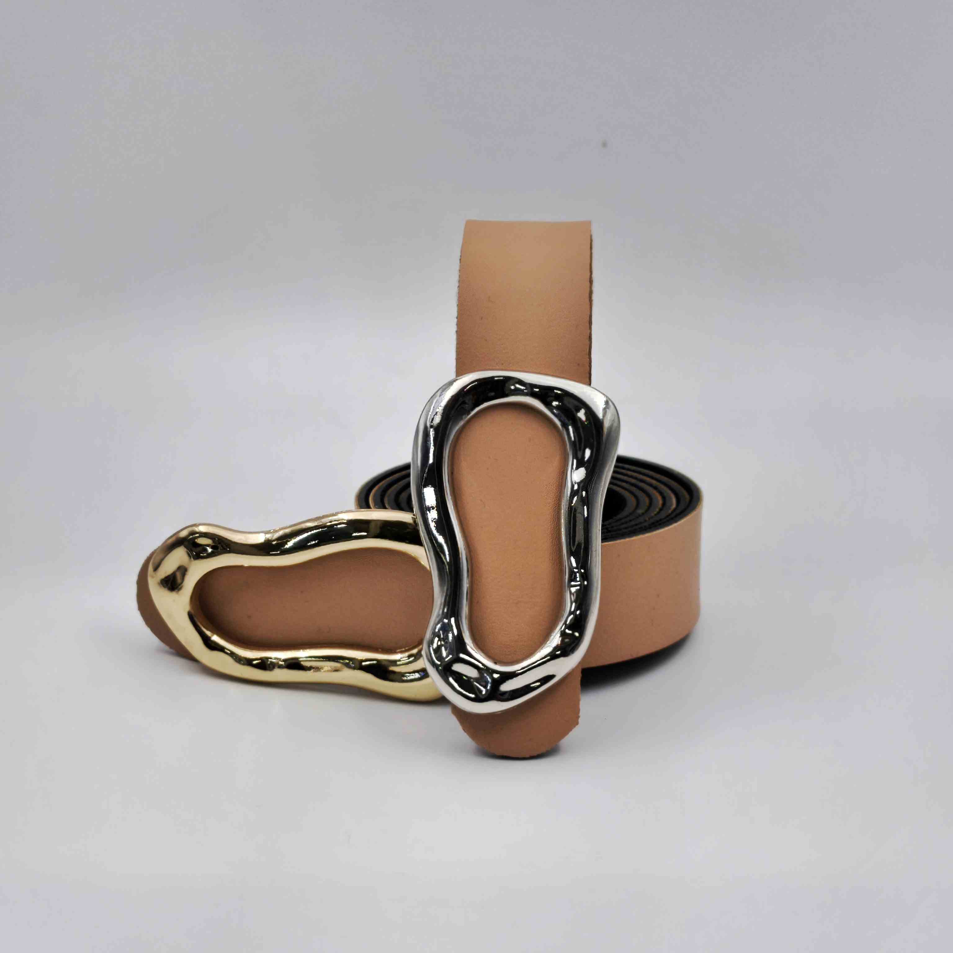 کمربند چرمی زنانه با سکک دفرمه با عرض ۳سانتی متر و طول ۱۱۰ سانتی متر مناسب استفاده برای انواع لباس و شلوار .
